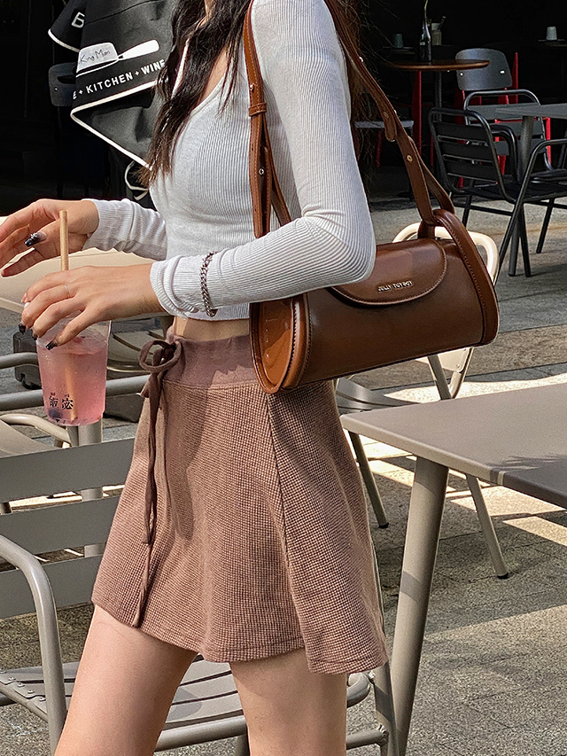 Inspired by the playful form of donuts, the bag features soft raised ribbing that enhances its sculptural baguette shape, adding depth and texture to every curve.